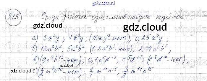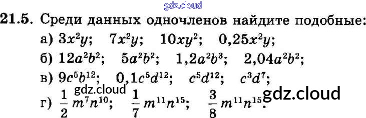 § 21. Сложение и вычитание одочленов Ответы к Главе 5 по Алгебре 7 класс Задачник Мордкович  Базовый уровень Часть 2 Мнемозина