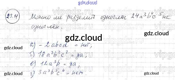 § 23. Деление одночлена на одночлен Ответы к Главе 5 по Алгебре 7 класс Задачник Мордкович Базовый уровень Часть 2 Мнемозина