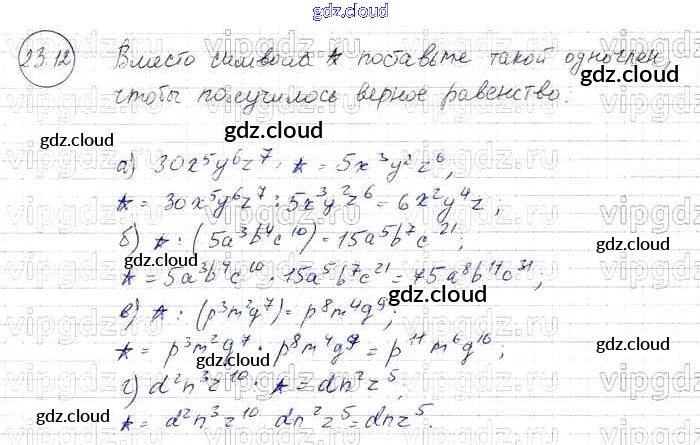 § 23. Деление одночлена на одночлен Ответы к Главе 5 по Алгебре 7 класс Задачник Мордкович Базовый уровень Часть 2 Мнемозина