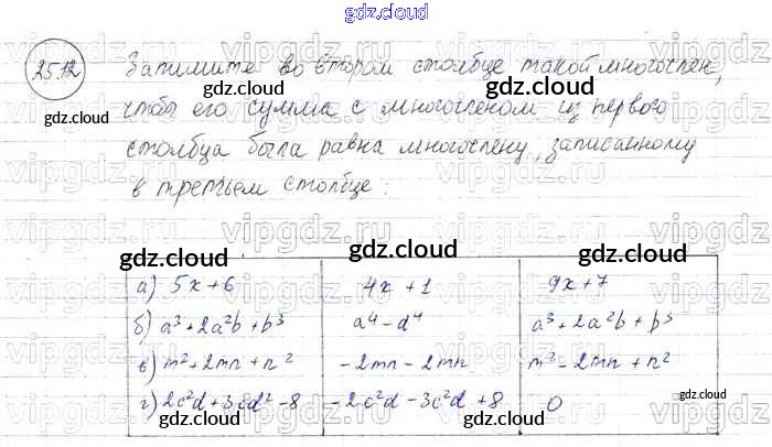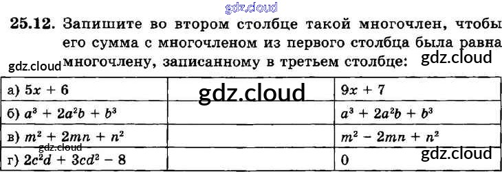 § 25. Сложение и вычитание многочленов Ответы к Главе 6 по Алгебре 7 класс Задачник Мордкович Базовый уровень Часть 2 Мнемозина