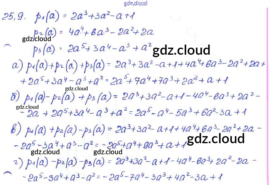 § 25. Сложение и вычитание многочленов Ответы к Главе 6 по Алгебре 7 класс Задачник Мордкович  Базовый уровень Часть 2 Мнемозина