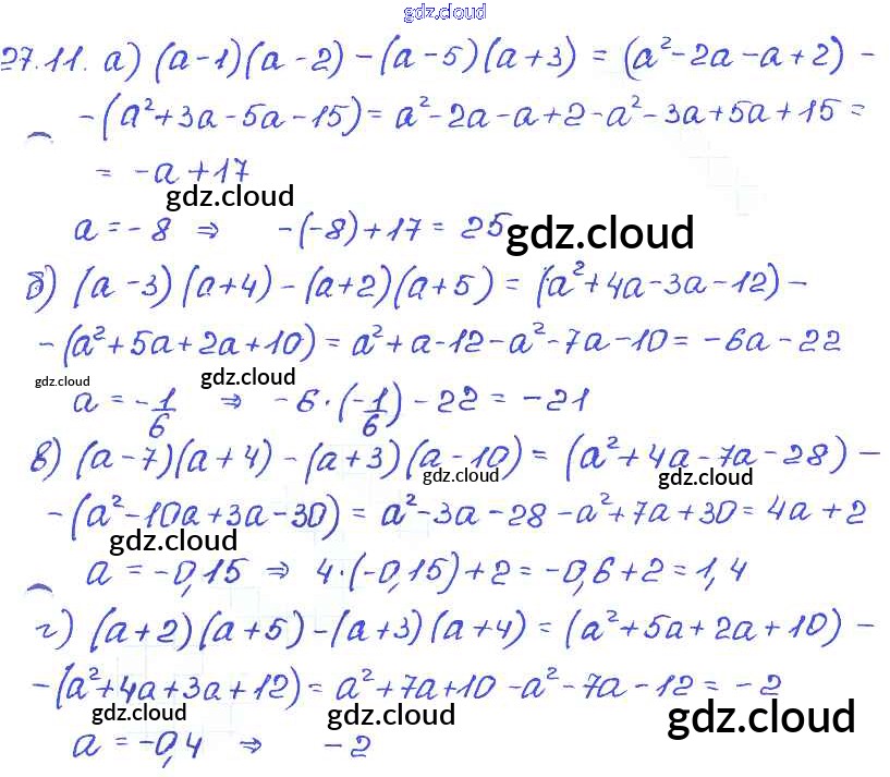 § 27. Умножение многочлена на многочлен Ответы к Главе 6 по Алгебре 7 класс Задачник Мордкович Базовый уровень Часть 2 Мнемозина