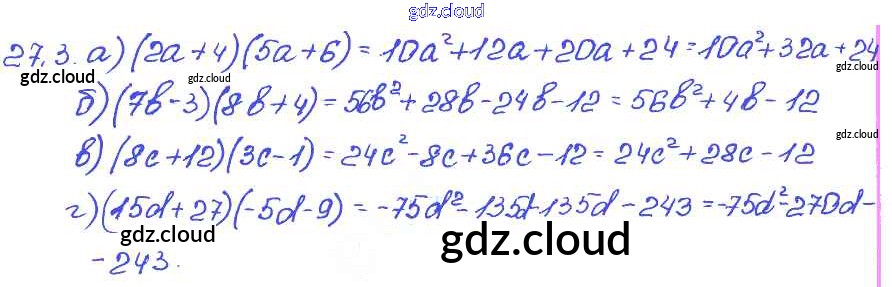 § 27. Умножение многочлена на многочлен Ответы к Главе 6 по Алгебре 7 класс Задачник Мордкович  Базовый уровень Часть 2 Мнемозина