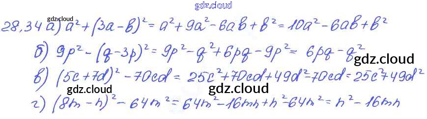 § 28. Формулы сокращенного умножения Ответы к Главе 6 по Алгебре 7 класс Задачник Мордкович  Базовый уровень Часть 2 Мнемозина