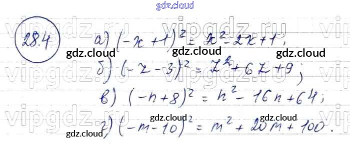 § 28. Формулы сокращенного умножения Ответы к Главе 6 по Алгебре 7 класс Задачник Мордкович Базовый уровень Часть 2 Мнемозина