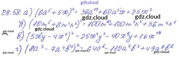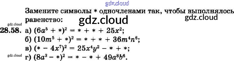 § 28. Формулы сокращенного умножения Ответы к Главе 6 по Алгебре 7 класс Задачник Мордкович Базовый уровень Часть 2 Мнемозина