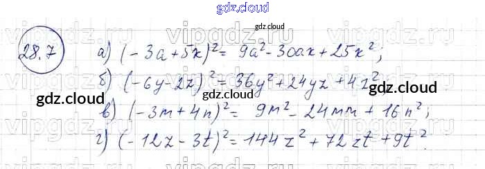 § 28. Формулы сокращенного умножения Ответы к Главе 6 по Алгебре 7 класс Задачник Мордкович Базовый уровень Часть 2 Мнемозина