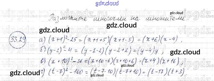 § 33. Разложение многочленов на множители с помощью формул сокращенного умножения Ответы к Главе 7 по Алгебре 7 класс Задачник Мордкович  Базовый уровень Часть 2 Мнемозина
