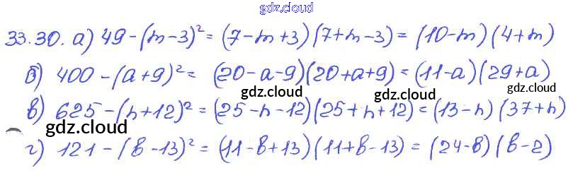 § 33. Разложение многочленов на множители с помощью формул сокращенного умножения Ответы к Главе 7 по Алгебре 7 класс Задачник Мордкович Базовый уровень Часть 2 Мнемозина