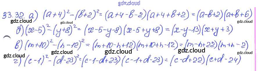 § 33. Разложение многочленов на множители с помощью формул сокращенного умножения Ответы к Главе 7 по Алгебре 7 класс Задачник Мордкович Базовый уровень Часть 2 Мнемозина
