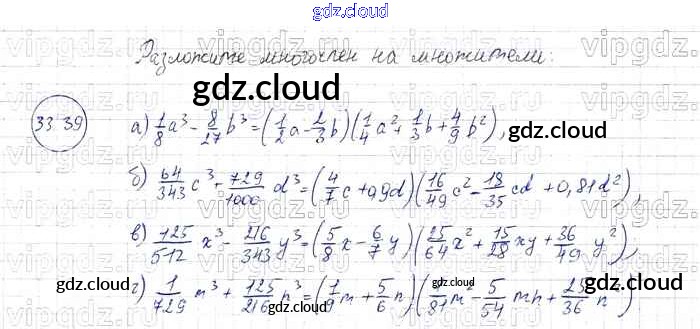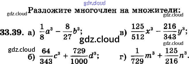 § 33. Разложение многочленов на множители с помощью формул сокращенного умножения Ответы к Главе 7 по Алгебре 7 класс Задачник Мордкович  Базовый уровень Часть 2 Мнемозина