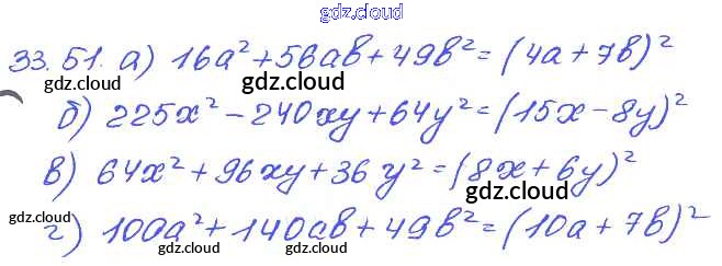 § 33. Разложение многочленов на множители с помощью формул сокращенного умножения Ответы к Главе 7 по Алгебре 7 класс Задачник Мордкович  Базовый уровень Часть 2 Мнемозина