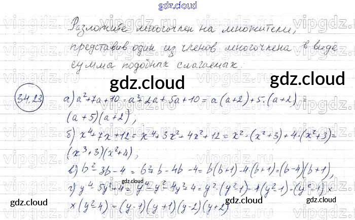 § 34. Разложение многочленов на множители с помощью комбинаций различных приемов Ответы к Главе 7 по Алгебре 7 класс Задачник Мордкович Базовый уровень Часть 2 Мнемозина