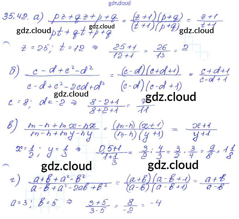 § 35. Сокращение алгебраических дробей Ответы к Главе 7 по Алгебре 7 класс Задачник Мордкович  Базовый уровень Часть 2 Мнемозина