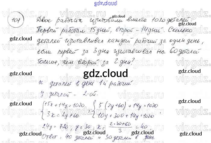 Ответ на задание 101 Задачник Алгебра  за 7 (седьмой) класс Мордкович, Александрова, Мишустина, Тульчинская  Базовый уровень 2013 Часть 2