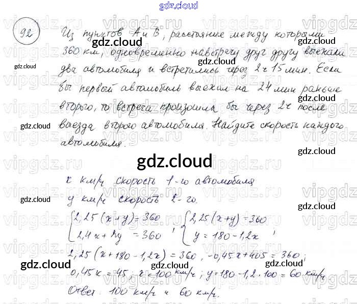 Ответ на задание 92 Задачник Алгебра  за 7 (седьмой) класс Мордкович, Александрова, Мишустина, Тульчинская  Базовый уровень 2013 Часть 2