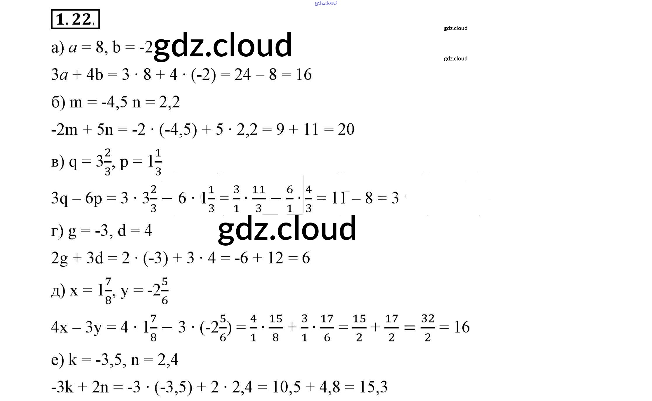 Ответ на задание 1.22 Учебник Алгебра за 7 (седьмой) класс Мордкович, Семёнов, Александрова, Мардахаева 2018 ФГОС онлайн и без номера телефона.