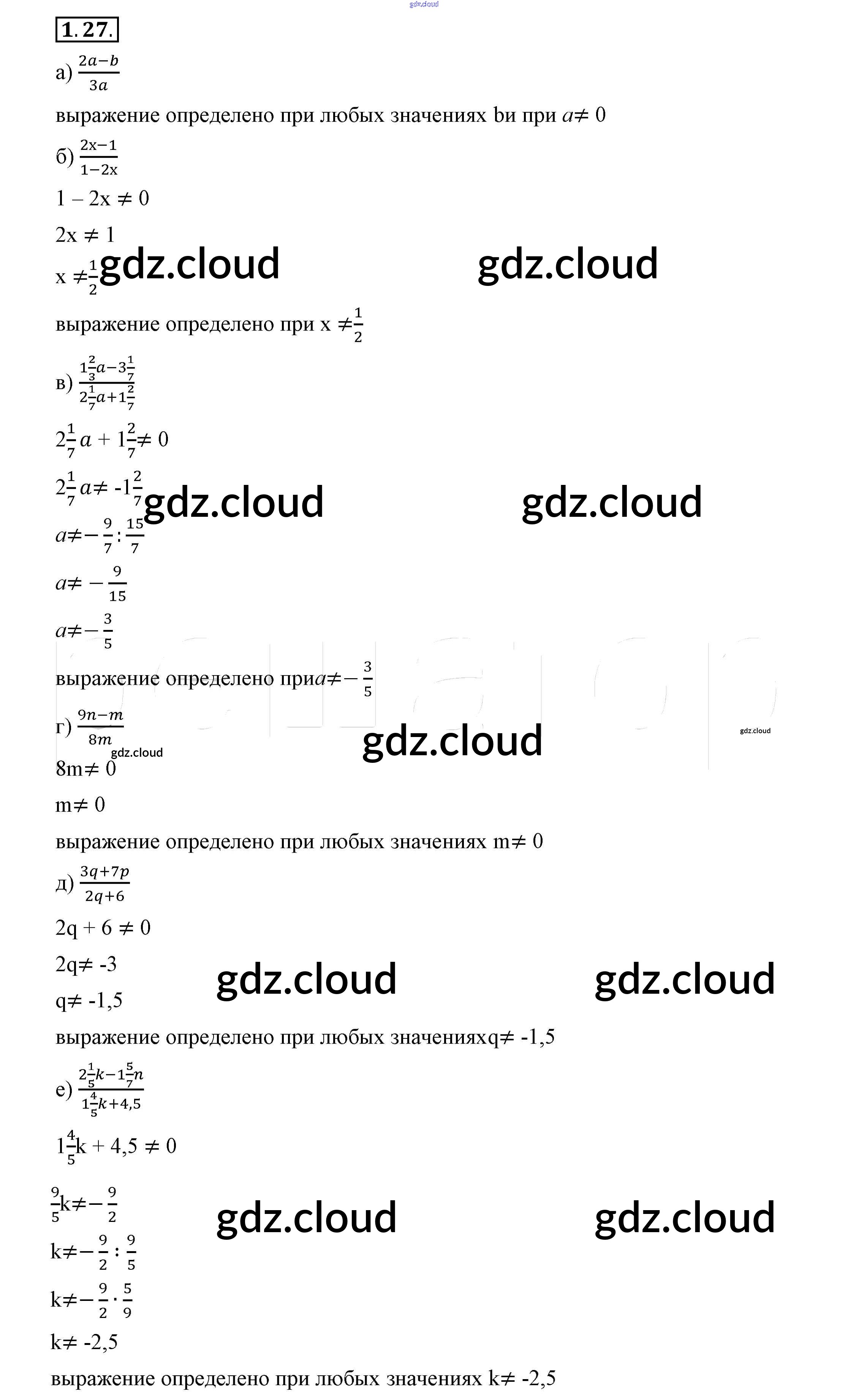 Ответ на задание 1.27 Учебник Алгебра за 7 (седьмой) класс Мордкович, Семёнов, Александрова, Мардахаева 2018 ФГОС онлайн и без номера телефона.