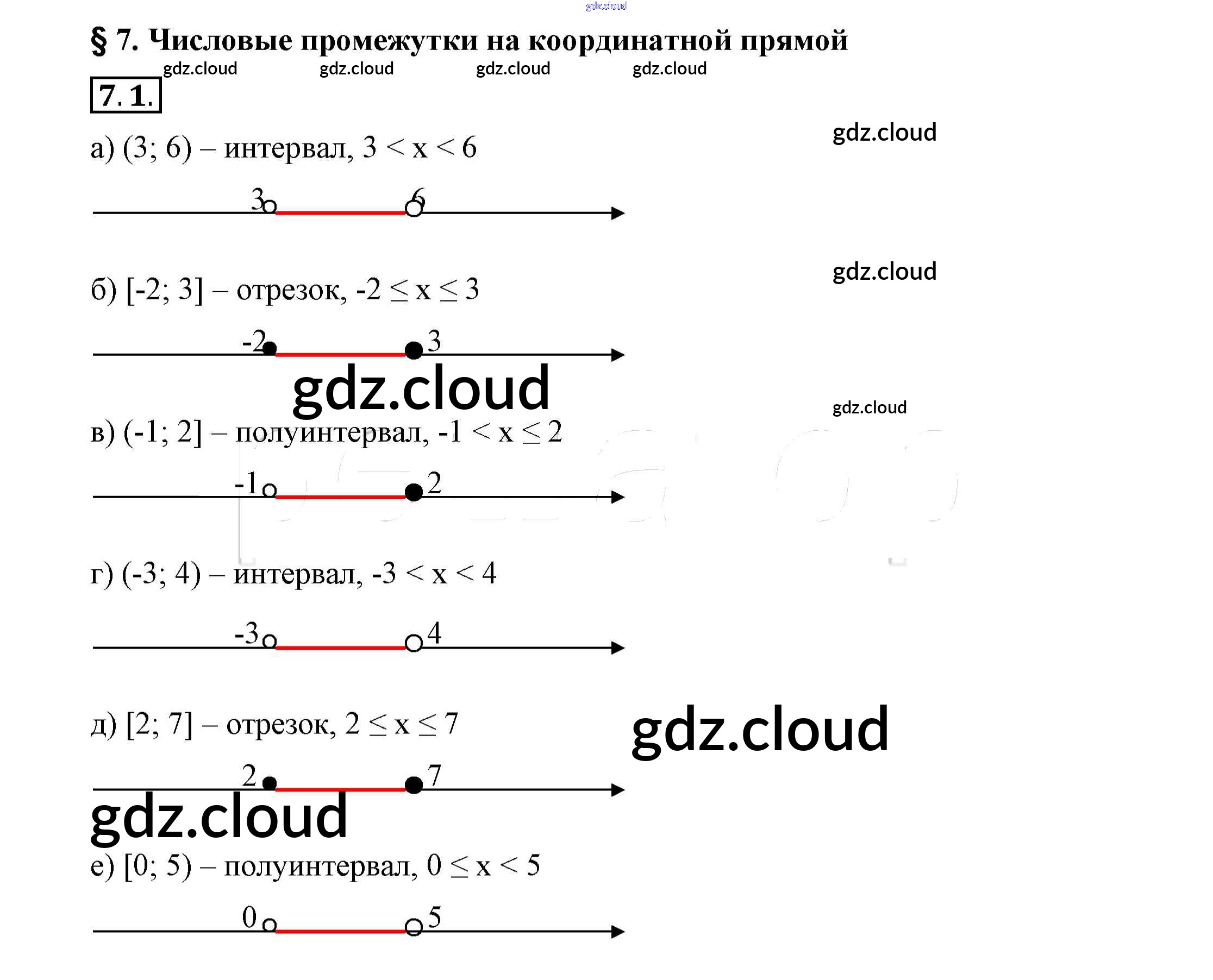Ответы к §7. Числовые промежутки на координатной прямой по Алгебре 7 класс Учебник Мордкович Просвещение