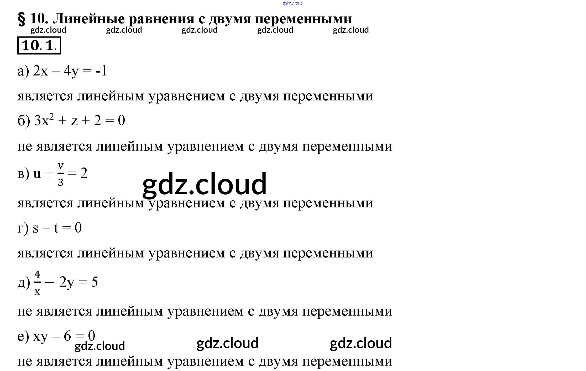 Ответы к §10. Линейные уравнения с двумя переменными по Алгебре 7 класс Учебник Мордкович Просвещение