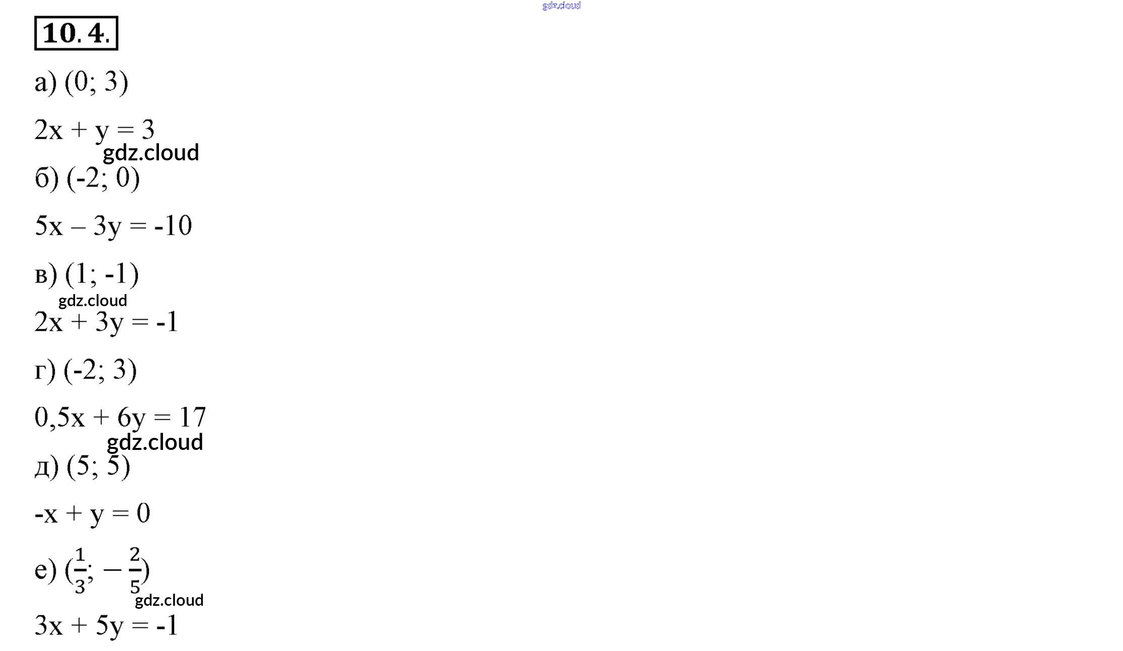Ответы к §10. Линейные уравнения с двумя переменными по Алгебре 7 класс Учебник Мордкович Просвещение