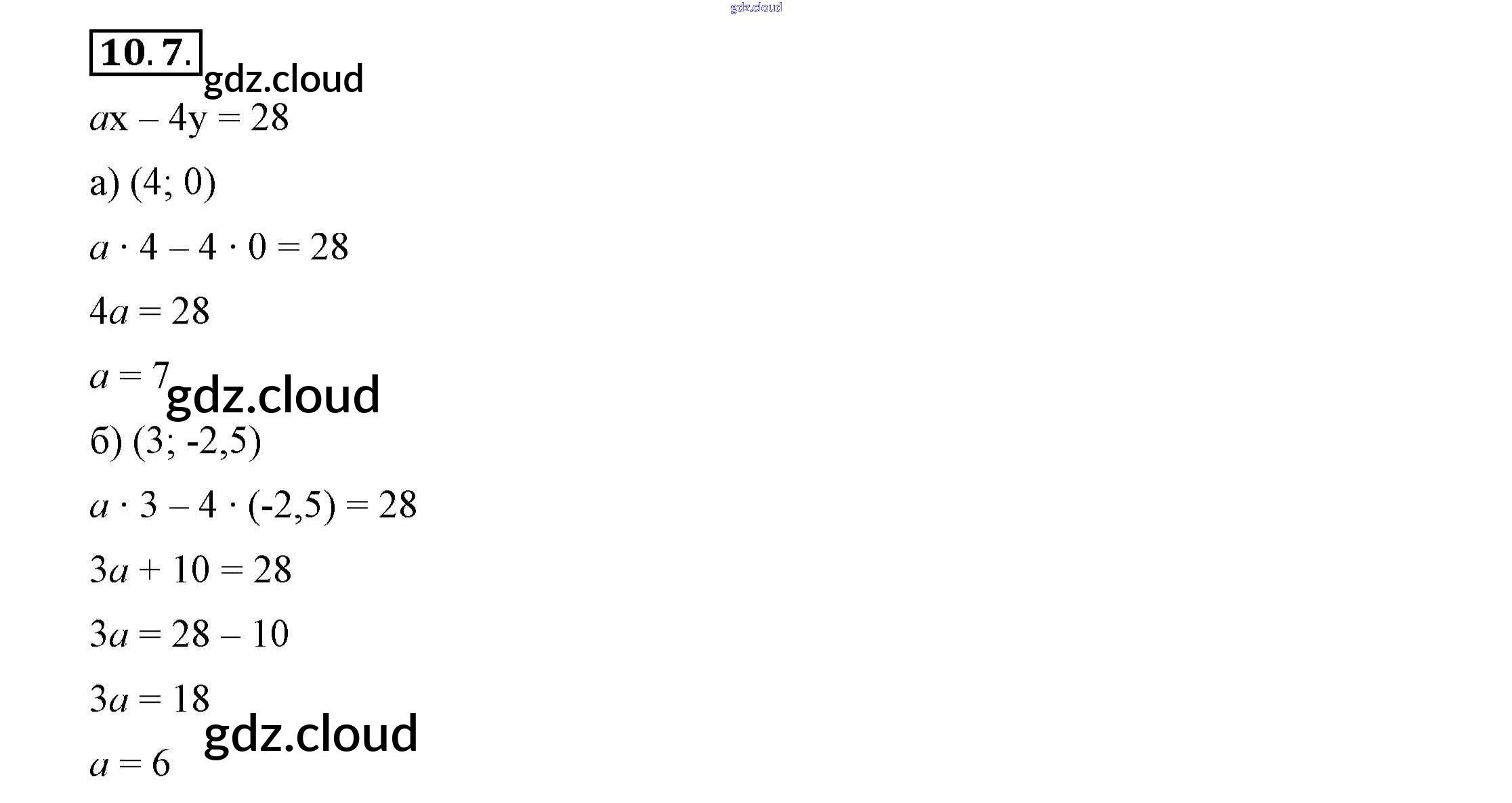 Ответ на задание 10.7 Учебник Алгебра за 7 (седьмой) класс Мордкович, Семёнов, Александрова, Мардахаева 2018 ФГОС онлайн и без номера телефона.