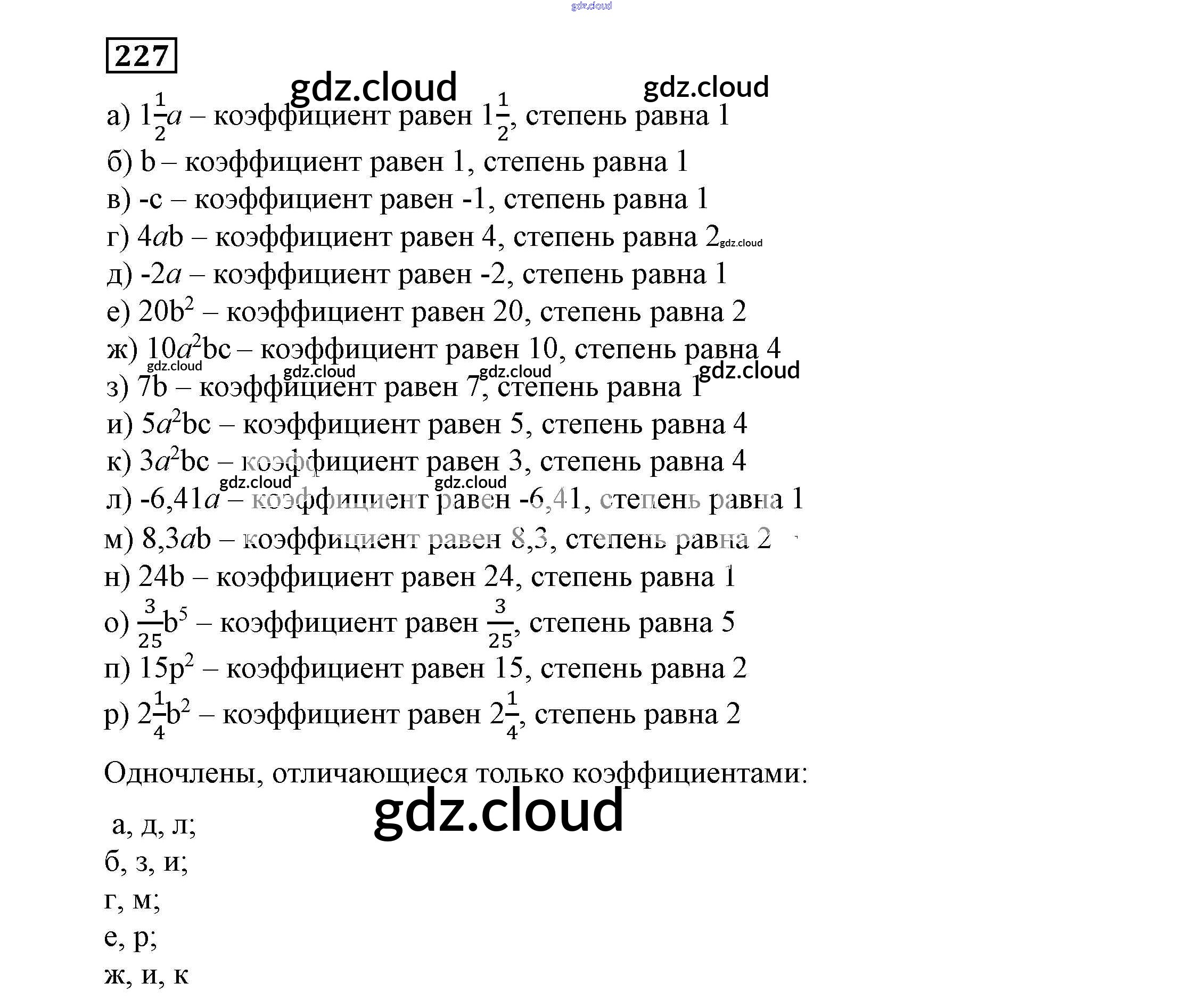 Ответ на задание 227 Учебник Алгебра  за 7 (седьмой) класс Никольский, Потапов, Решетников, Шевкин МГУ - школе  2013