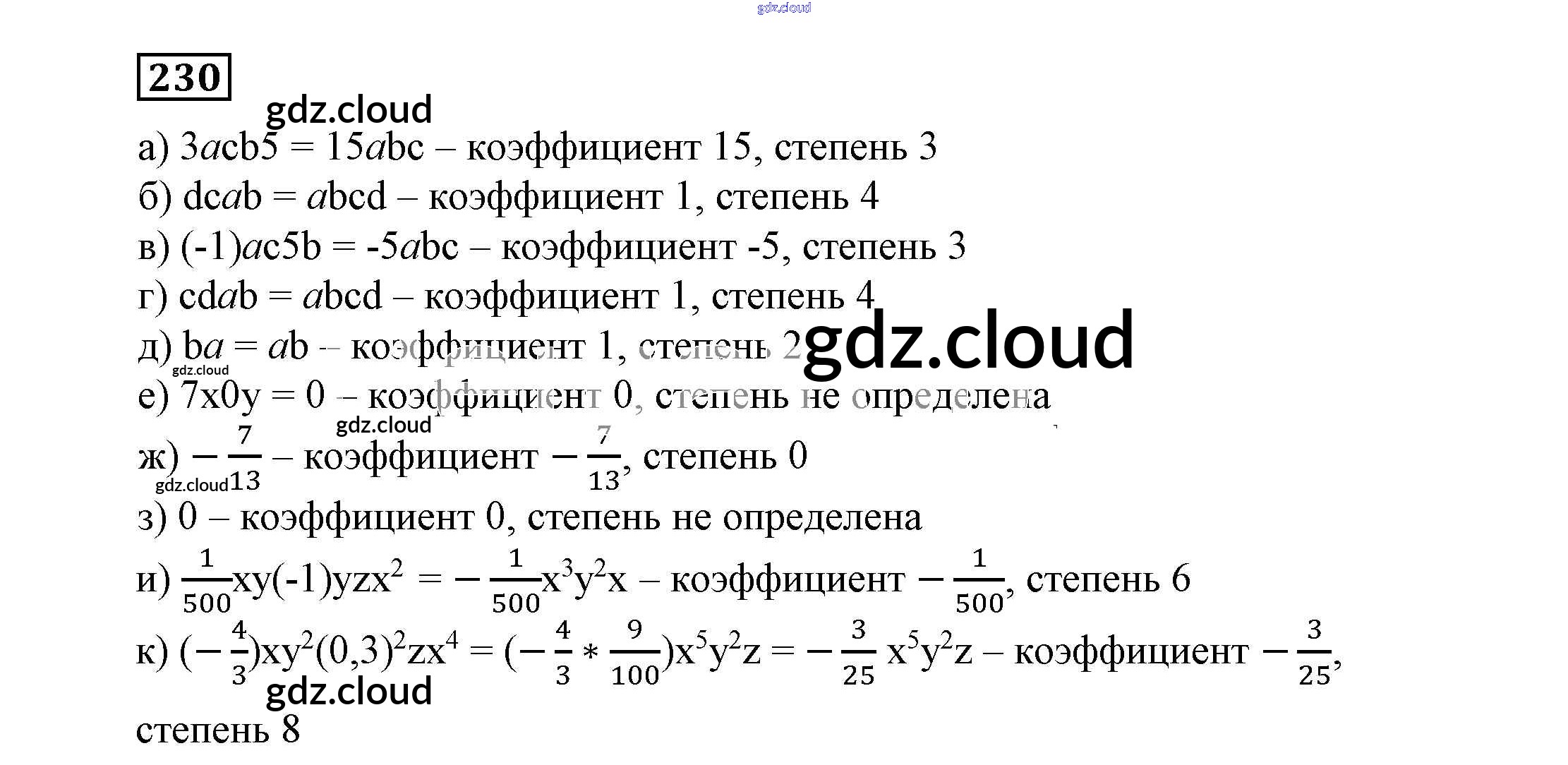 Ответ на задание 230 Учебник Алгебра за 7 (седьмой) класс Никольский, Потапов, Решетников, Шевкин МГУ - школе 2013