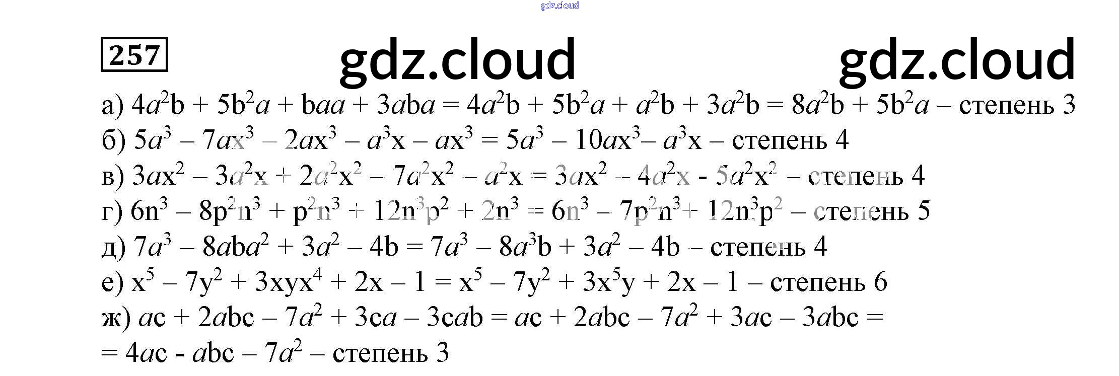 Ответ на задание 257 Учебник Алгебра за 7 (седьмой) класс Никольский, Потапов, Решетников, Шевкин МГУ - школе 2013