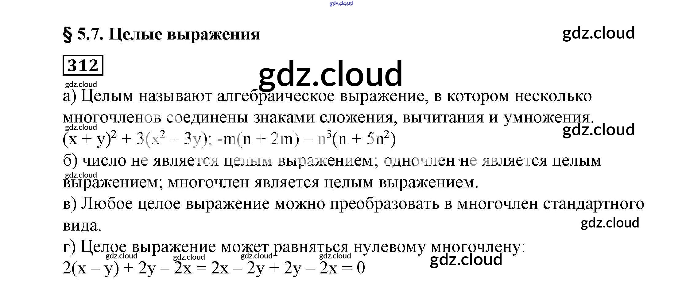 Ответ на задание 312 Учебник Алгебра за 7 (седьмой) класс Никольский, Потапов, Решетников, Шевкин МГУ - школе 2013