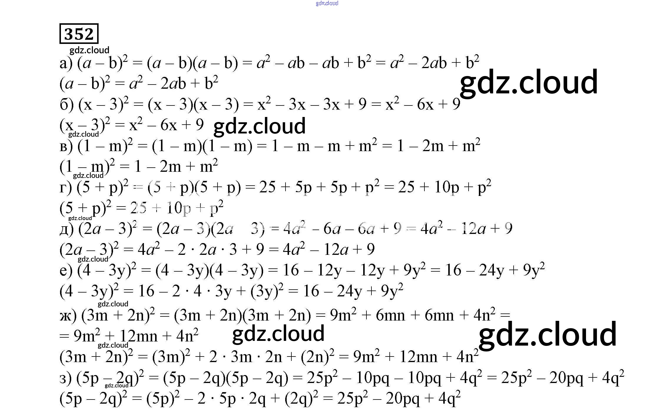 Ответ на задание 352 Учебник Алгебра  за 7 (седьмой) класс Никольский, Потапов, Решетников, Шевкин МГУ - школе  2013