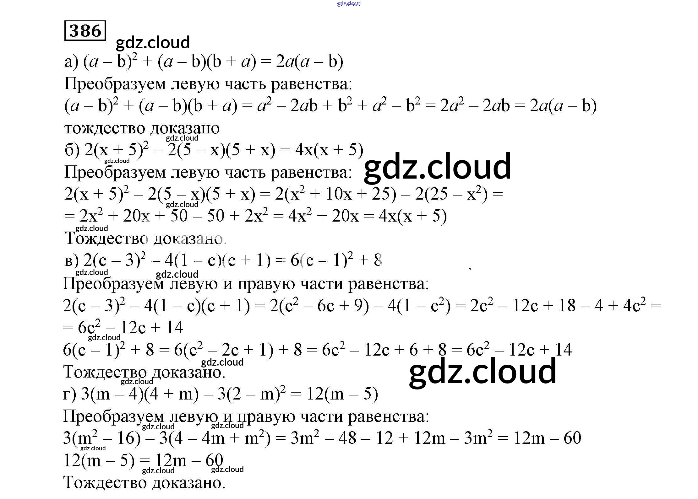 Ответ на задание 386 Учебник Алгебра за 7 (седьмой) класс Никольский, Потапов, Решетников, Шевкин МГУ - школе 2013