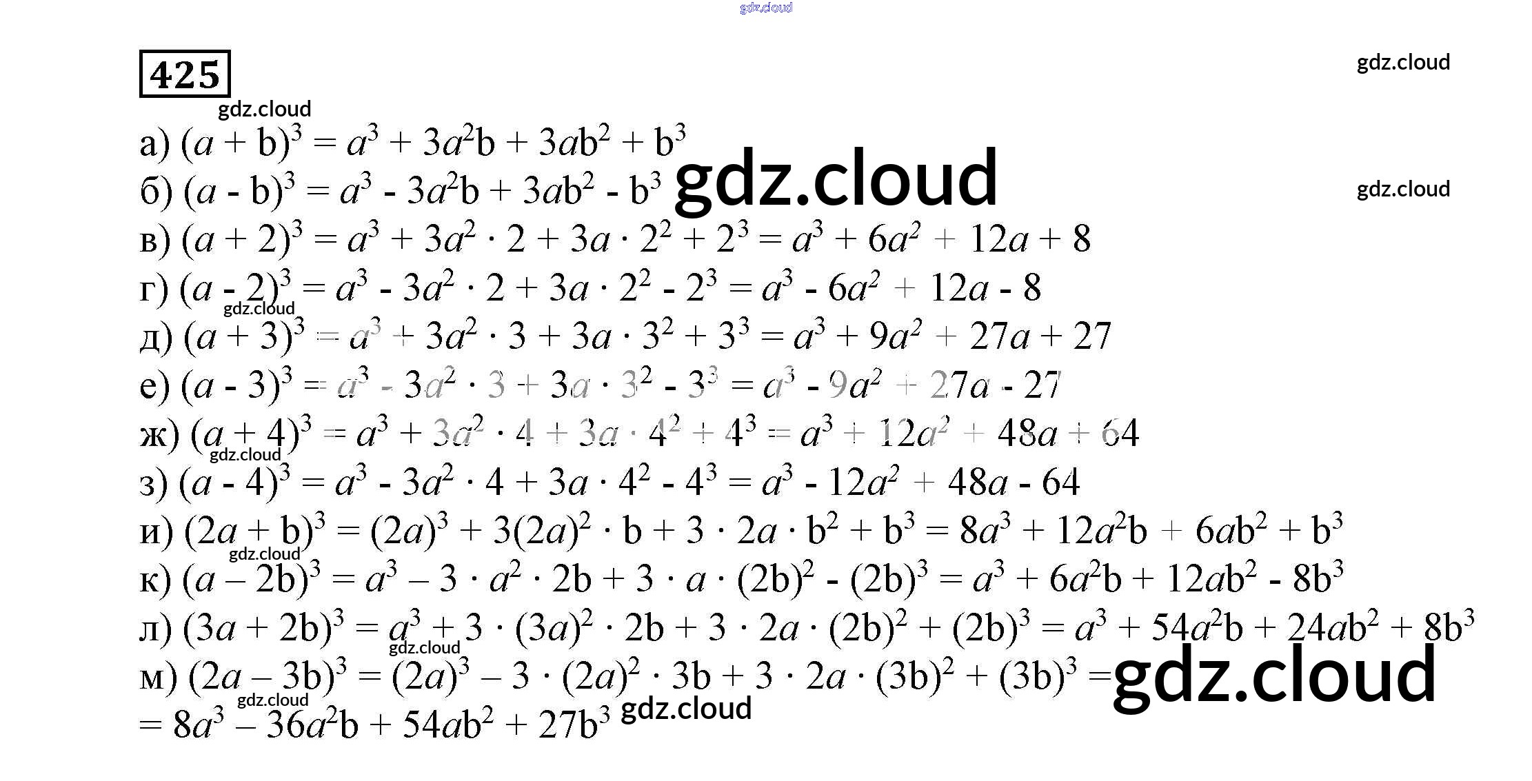 Ответ на задание 425 Учебник Алгебра за 7 (седьмой) класс Никольский, Потапов, Решетников, Шевкин МГУ - школе 2013