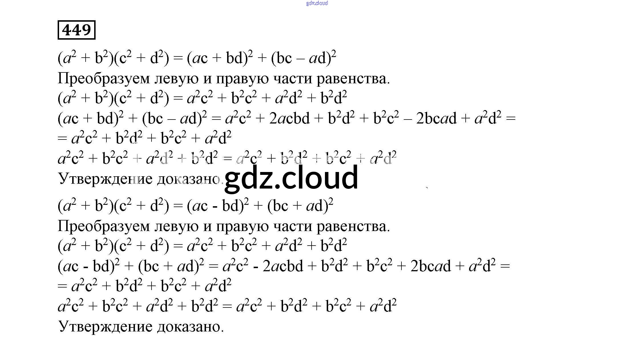 Ответ на задание 449 Учебник Алгебра  за 7 (седьмой) класс Никольский, Потапов, Решетников, Шевкин МГУ - школе  2013
