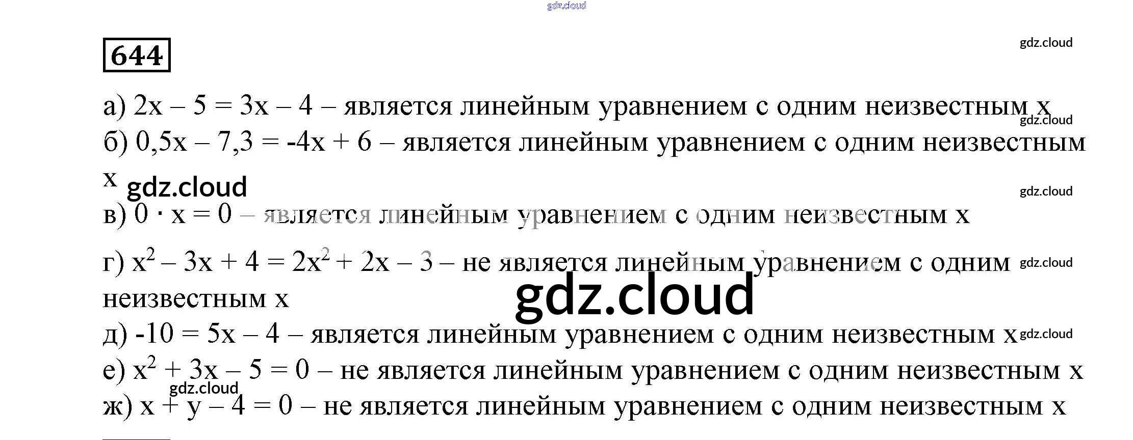 Ответ на задание 644 Учебник Алгебра  за 7 (седьмой) класс Никольский, Потапов, Решетников, Шевкин МГУ - школе  2013