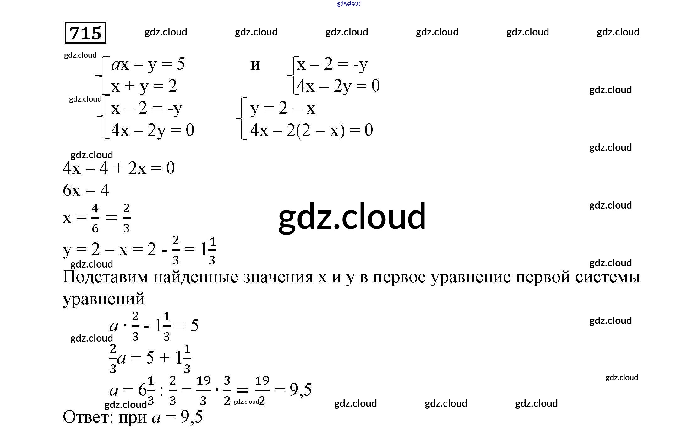 Ответ на задание 715 Учебник Алгебра за 7 (седьмой) класс Никольский, Потапов, Решетников, Шевкин МГУ - школе 2013
