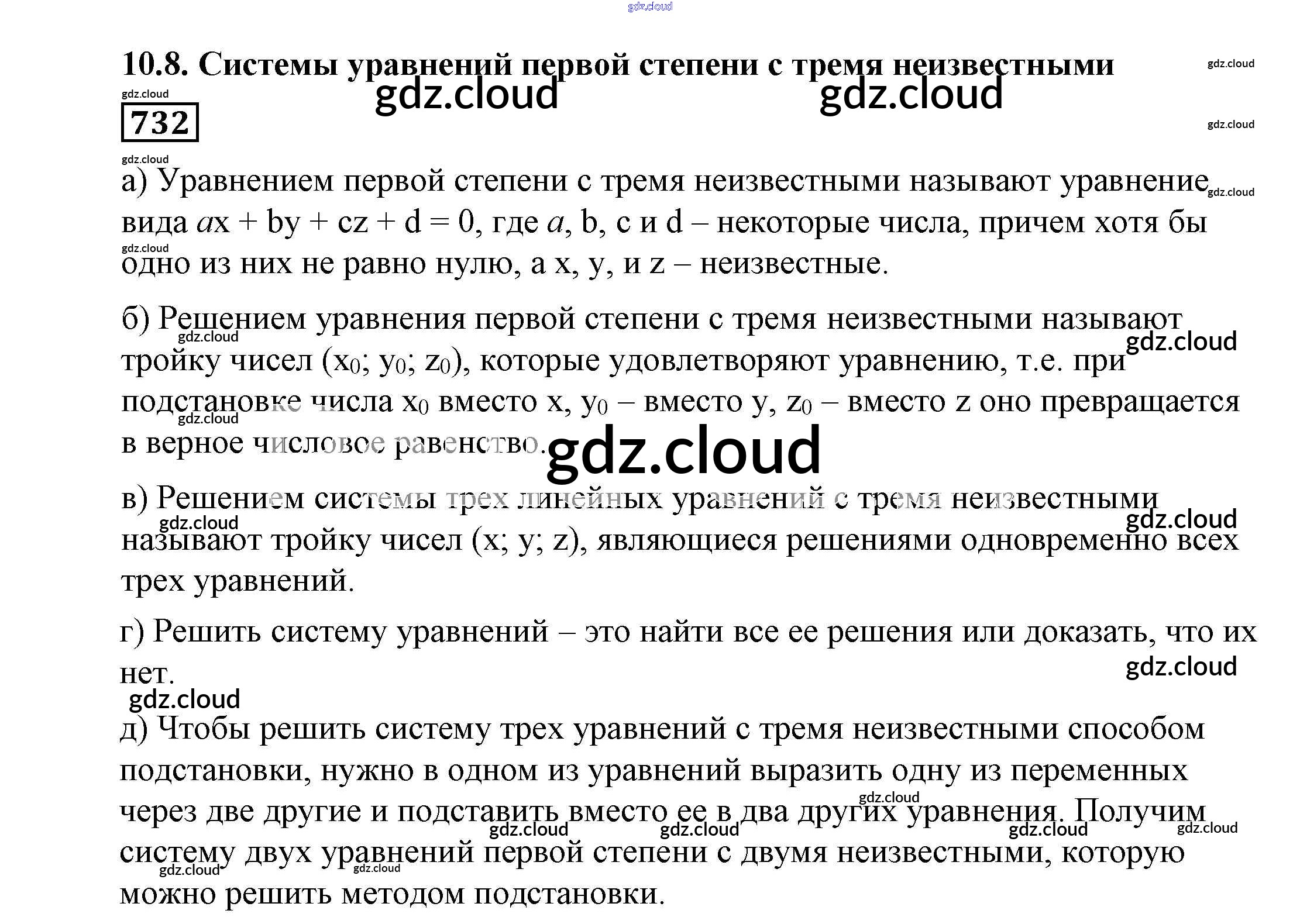 Ответ на задание 732 Учебник Алгебра за 7 (седьмой) класс Никольский, Потапов, Решетников, Шевкин МГУ - школе 2013
