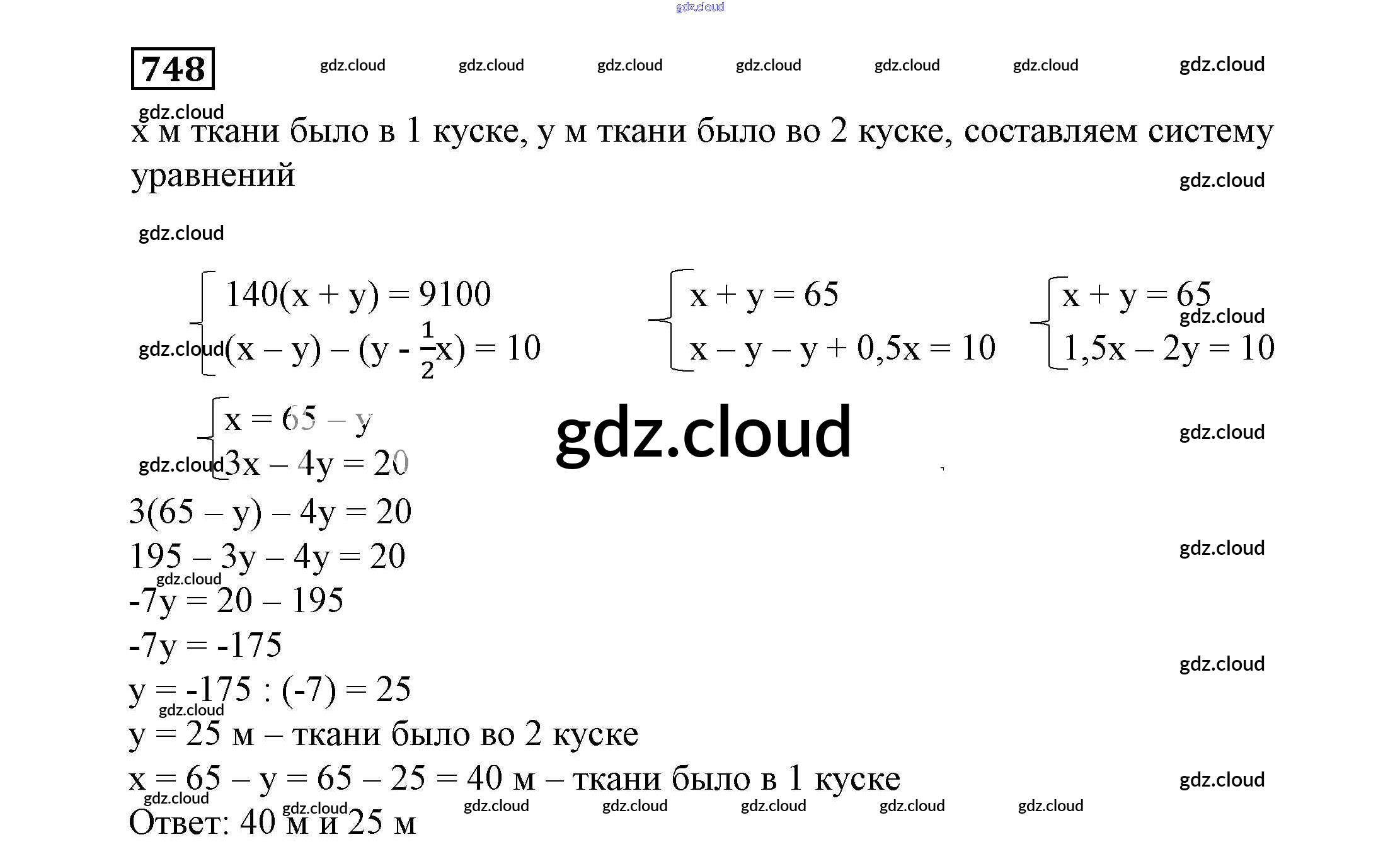 Ответ на задание 748 Учебник Алгебра  за 7 (седьмой) класс Никольский, Потапов, Решетников, Шевкин МГУ - школе  2013