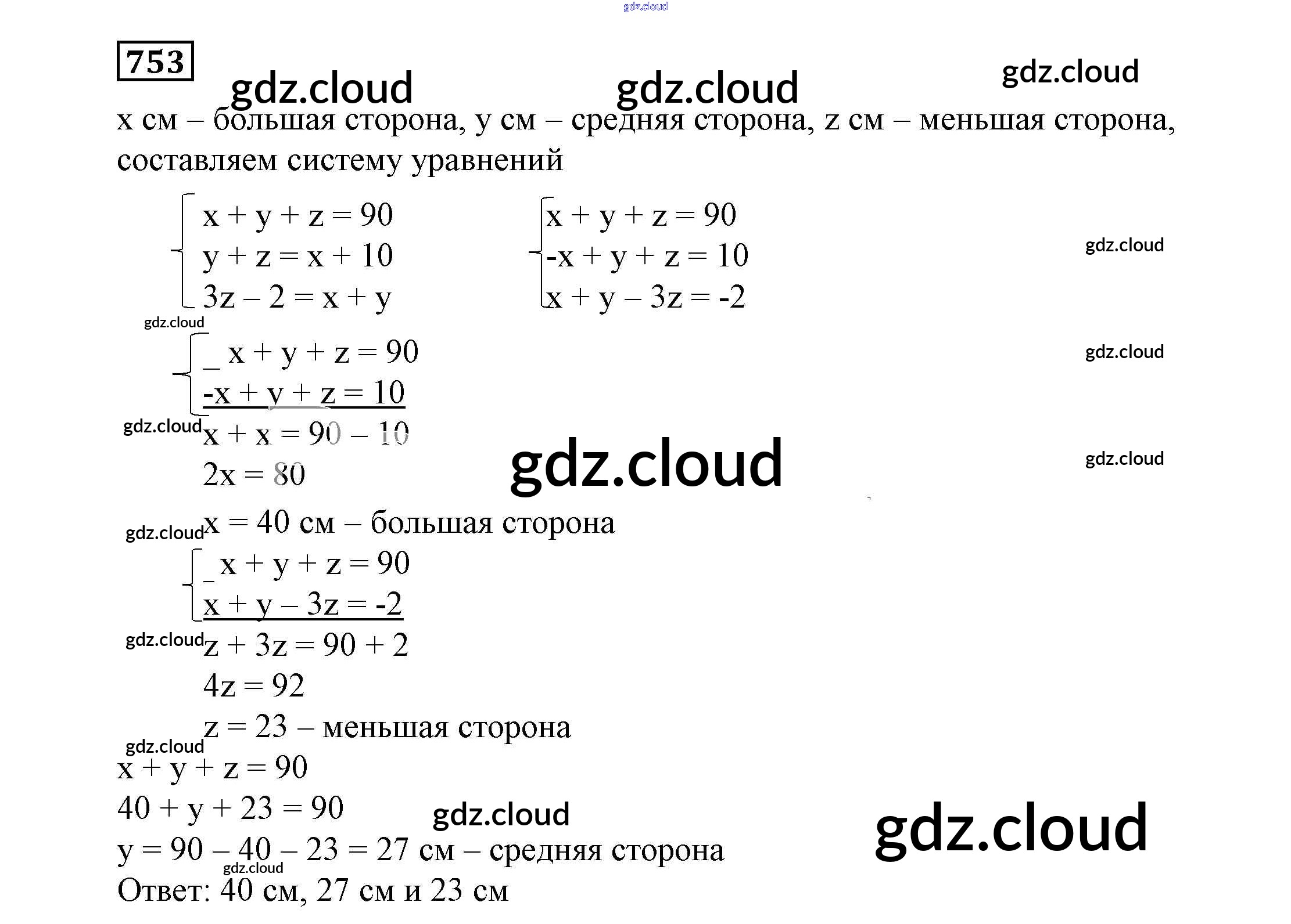Ответ на задание 753 Учебник Алгебра за 7 (седьмой) класс Никольский, Потапов, Решетников, Шевкин МГУ - школе 2013