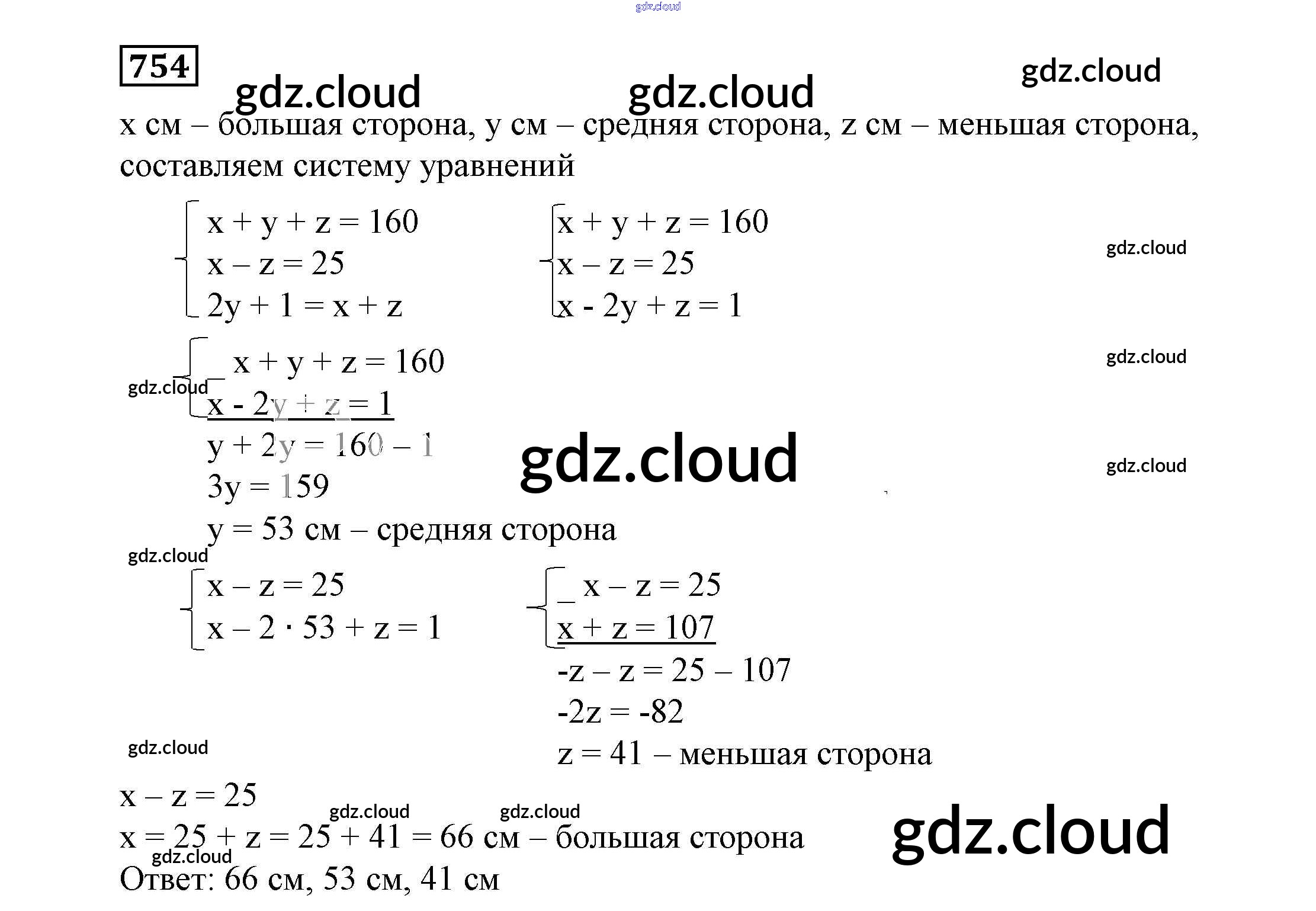 Ответ на задание 754 Учебник Алгебра  за 7 (седьмой) класс Никольский, Потапов, Решетников, Шевкин МГУ - школе  2013