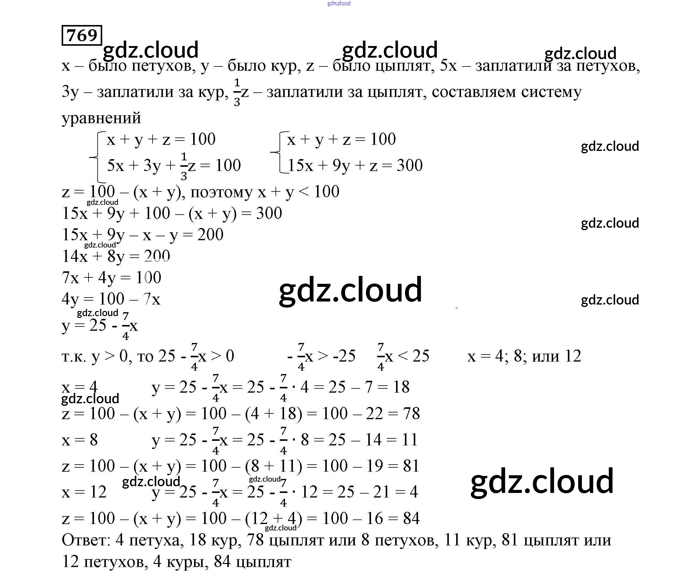Ответ на задание 769 Учебник Алгебра  за 7 (седьмой) класс Никольский, Потапов, Решетников, Шевкин МГУ - школе  2013