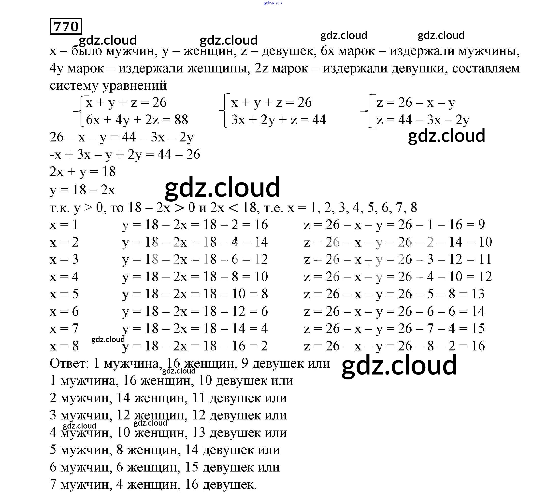 Ответ на задание 770 Учебник Алгебра  за 7 (седьмой) класс Никольский, Потапов, Решетников, Шевкин МГУ - школе  2013
