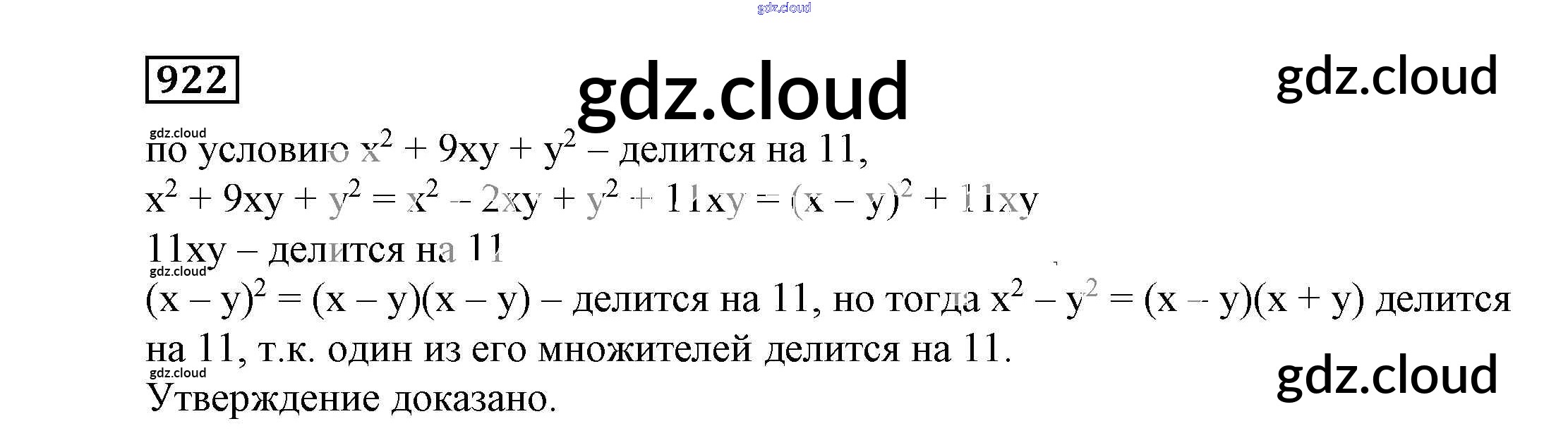 Ответ на задание 922 Учебник Алгебра  за 7 (седьмой) класс Никольский, Потапов, Решетников, Шевкин МГУ - школе  2013
