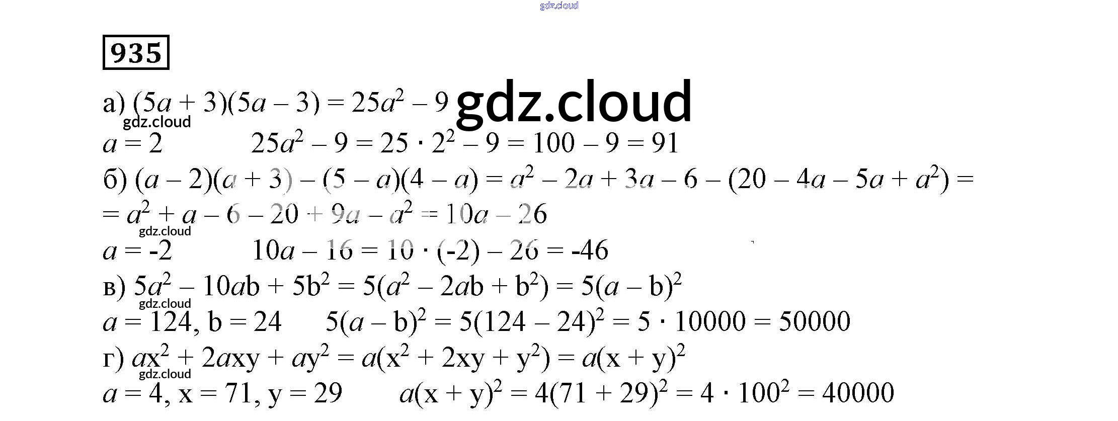 Ответ на задание 935 Учебник Алгебра за 7 (седьмой) класс Никольский, Потапов, Решетников, Шевкин МГУ - школе 2013