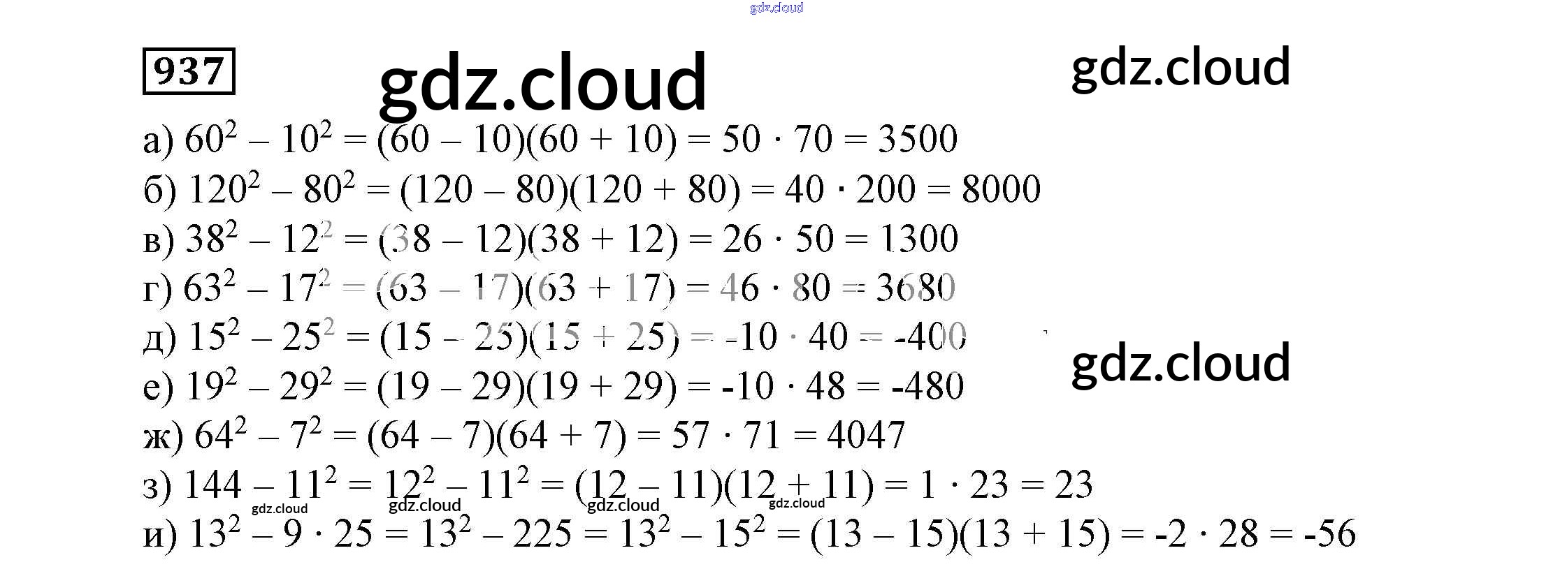 Ответ на задание 937 Учебник Алгебра за 7 (седьмой) класс Никольский, Потапов, Решетников, Шевкин МГУ - школе 2013