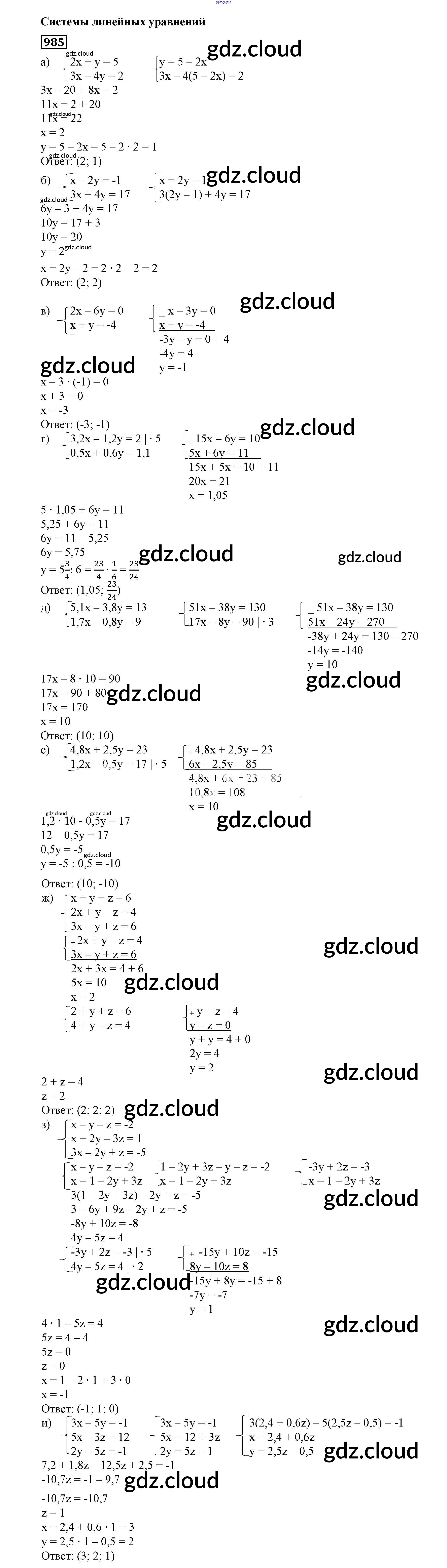 Ответ на задание 985 Учебник Алгебра  за 7 (седьмой) класс Никольский, Потапов, Решетников, Шевкин МГУ - школе  2013