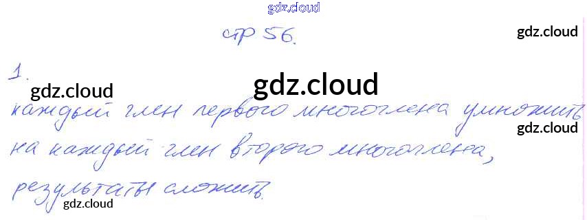 § 11. Умножение многочлена на многочлен. Страница 56-63 Ответы. Часть 1 по Алгебре 7 класс Рабочая тетрадь Мерзляк Алгоритм успеха  Часть 1, 2 Вентана-граф