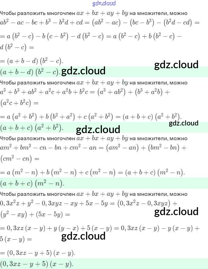 § 13. Разложение многочленов на множители. Метод группировки. Страница 69-71 Ответы. Часть 1 по Алгебре 7 класс Рабочая тетрадь Мерзляк Алгоритм успеха  Часть 1, 2 Вентана-граф