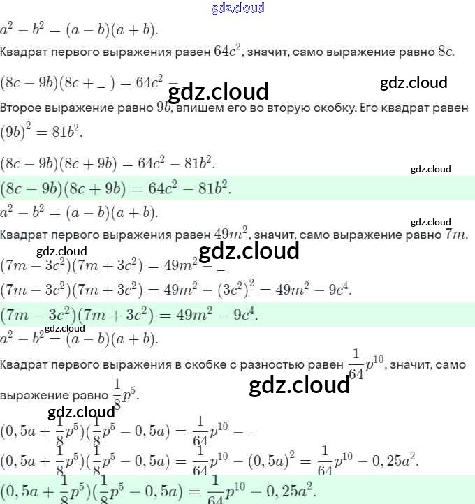 § 14. Произведение разности и суммы двух выражений. Страница 71-74 Ответы. Часть 1 по Алгебре 7 класс Рабочая тетрадь Мерзляк Алгоритм успеха  Часть 1, 2 Вентана-граф