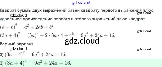 § 16. Квадрат суммы и квадрат разности двух выражений. Страница 82-91 Ответы. Часть 1 по Алгебре 7 класс Рабочая тетрадь Мерзляк Алгоритм успеха Часть 1, 2 Вентана-граф